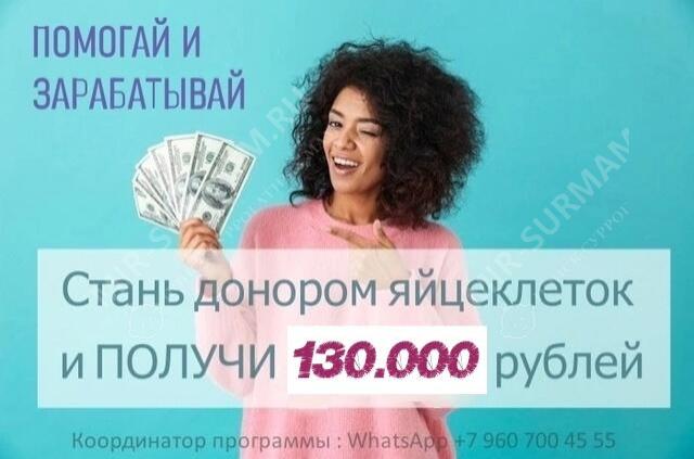 Вознаграждение ПОСЛЕ ПУНКЦИИ вне зависимости от количества взятых яйцеклеток 𝟏𝟑𝟎.𝟎𝟎𝟎 рублей, программа 10-12 дней.